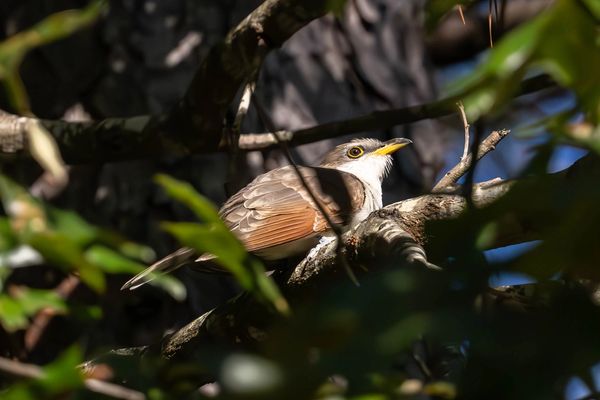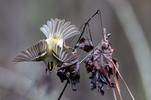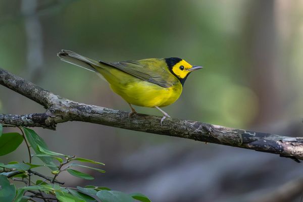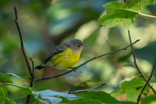 #12A Yellow Warbler with a tasty snack while being dive-bombed by a bee